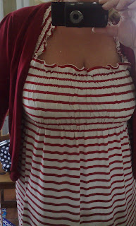 I think red and white stripes are a new fav of mine. What with the deckchair and now this. I've got a little fabric leftover too so I might make a top out of it.